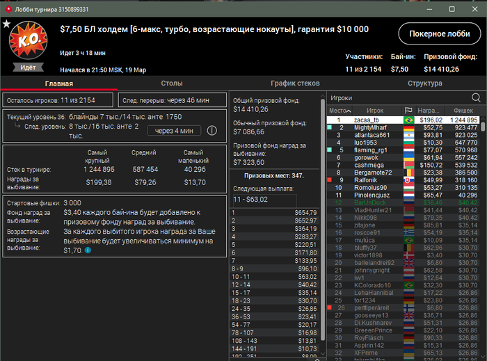 Обнулюсь пожалуй на шарке под марафон, отслеживать результаты будет в разы удобнее. Планирую по 40 турниров за сессию отыгрывать, можно будет по 50-60 когда разживусь и смогу себе позволить достойный комп, а то мой ноут больше 15 турниров одновременно не тянет, подлагивать начинает так не хило. А сейчас медитация, ужин и в бой.