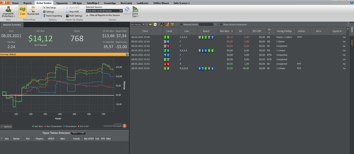 Вторая сессия за сегодня Непревычно, что ХМ2 не отображает руки, сейчас буду заниматься его реабилитированием Видать Старзы как то почуяли, что я собрался менять их рум и раздали мне сегодня очень много карманных Топ-пар( тузов только раз 5 дали)