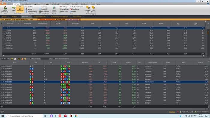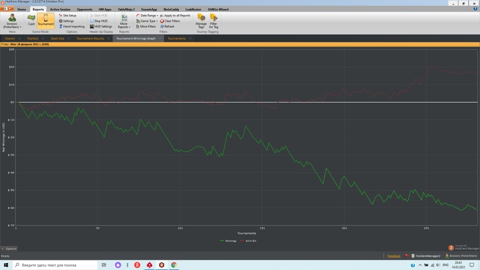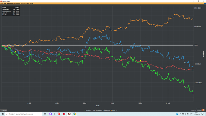 Доброго времени суток. В общем не знаю с чего начать. Начну с того, что я долгое время играл в покер по фану, кэш, мтт, спины, снг. В последний год твердо решил связать свою жизнь с покером, т.е в планах не просто втащить сандей миллион и на этом закончить, а играть до конца своей жизни. Играю снг, безумно нравиться эта дисциплина, но я никак не могу закрепиться в этой игре, так как не имею достаточных диведендов на жизнь и игру, я уверен, что я просто разношу в пух и прах микро лимиты, но не могу создать себе банкролл, для того что бы перейти на след. лимит, так как кушать хочется, да и ушел в долги. Среди своего окружения поддержки нету, никто не понимает меня. Думал устроиться на работу, накопить определенную сумму денег что бы хватило на пол года хотя бы, но работать на дядю не получается из-за моего скверного характера, просто не могу смириться с тем, что мне кто-то что-то указывает, не могу переосилить себя даже на пол года, отрабатываю месяц и шлю его к чертям, возвращаюсь в игру до первого даунстрика, потом вновь пытаюсь взять себя в руки, найти работу, но хватает меня не на долго. Так происходит вновь и вновь. По большому счету я самоучка, пробовал заниматься с тренером, но опять же мой характер, да и мне казалось, что он и сам то особо играть не умеет, поэтому бросил и продолжил изучать игру самостоятельно. Скажу честно, из-за всей этой канители были проблемы с наркотиками, но приняв тот факт, что мне нужно все таки начать именно с работы на дядю, бросил, отработал почти 3 месяца, но накопить на банкролл так и не получается, так как эти деньги также уходят на еду, да и еще и перестал играть, понимая что это бег на месте, вернулся обратно в игру и начал сразу с жесткого даунстрика. В общем я опустошен, не знаю что делать, к кому обратиться, как быть? Вот результаты за последние 200+ снг 9-макс 1.5$