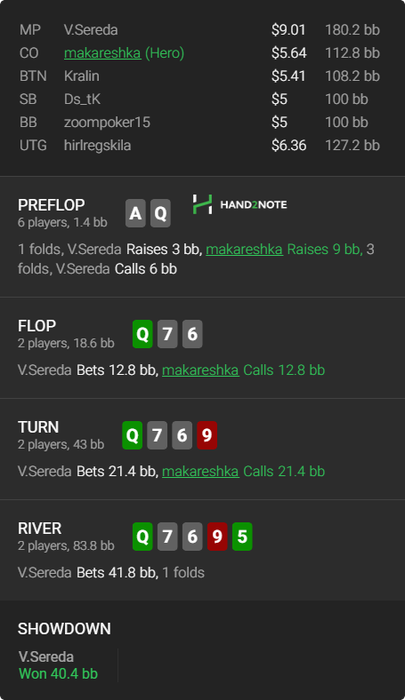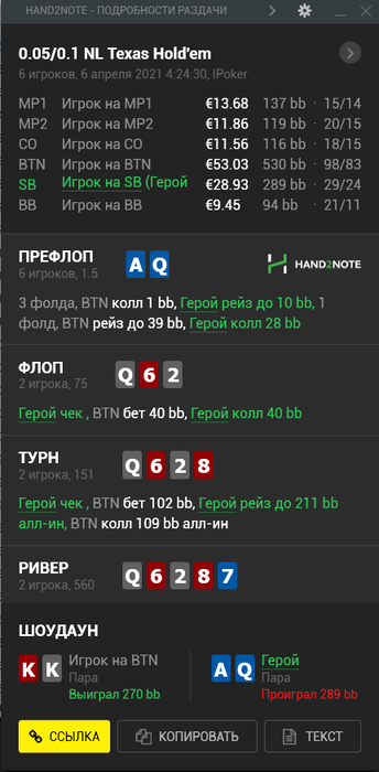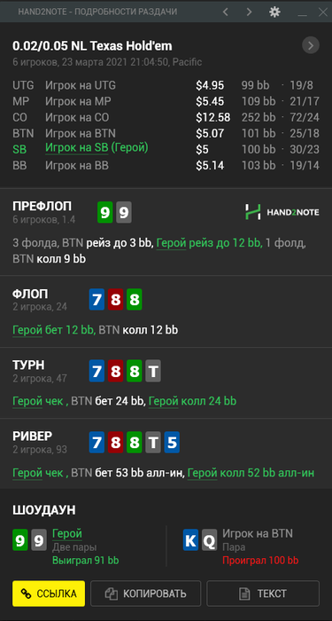 1) Нужно ли рейзить тёрн против агрессивного игрока или лучше разыграть медленно? Мне даже щас кажется что рейзить именно эту туз даму не надо. Потому что не так много риверов портят нам жизнь а также наврядли против адекватного игрока этот рейз будет на велью.