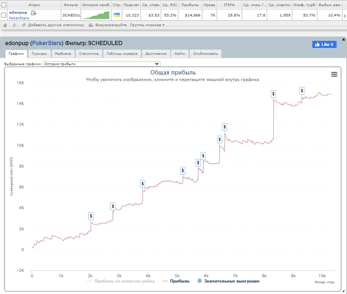 Активно играю МТТ с февраля 2019 года, хотя с покером знаком достаточно давно. Моя статистика на шаркскопе