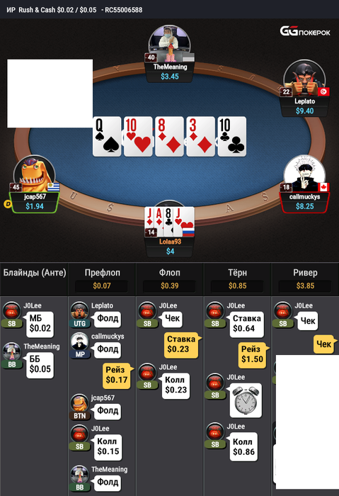Опять же, хоть шуллер и верно написал, но вряд ли тебе это очень сильно поможет. Основная проблема низких лимитов в том, что игроки излишне ссут, а потом соответственно и сосут . Конкретно в этой руке не так важны диапазоны соперника, важны твои блокеры, да и дополнительные усиления играют роль, если что-то изображаешь, будь добр делай это убедительно. Просто представь что у тебя реально стрит, с АJJ9 ты так же будешь разыгрывать этот спот, тоесть миниререйзить? Играй так, как играл бы имея реальную руку, я бы ререзил в 3/4пота, тк это мой основной бетсайзинг в таких спотах, можешь и в пот, не принципиально, главное играй так, как играл имея реальную руку, а минрейз это курам на смех....
