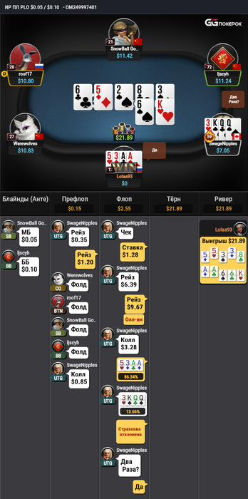 cc T866ss btn vs mp+co+ccSQsb 522d f 4w rAI vs b35%(sb) (Запихнул в 4вей3бетпоте с полным блефом против бета в 35%)