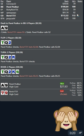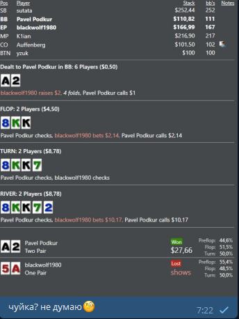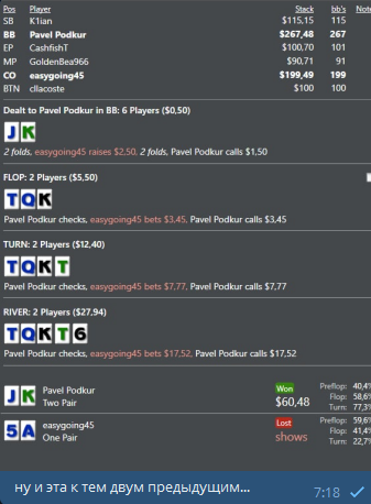 ну и немного раздач этой сессии из покерных кулуаров