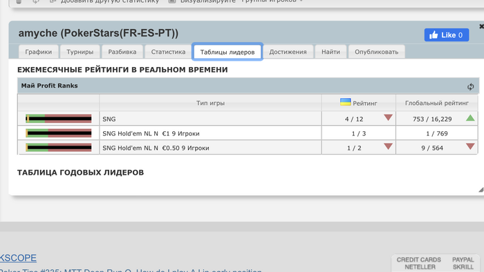 Я регуляр мтт abi 20, последний год был в FF, потом даунстрик, пришлось найти работу и играть мало, кикнули. Сейчас банкрола на игру в мтт нет. Что делать? Решил стать лучшим в одностоловых снг 1$, 3$ и 5$. Возможно ли это? Для себя докажу, что да. Начнём с sng 9max 1$ И 1€. Поехали . С удовольствием пообщаюсь с регами этих лимитов.