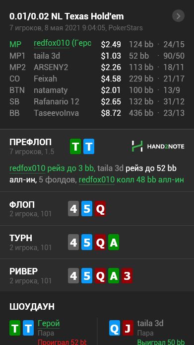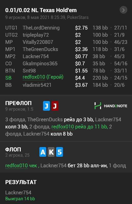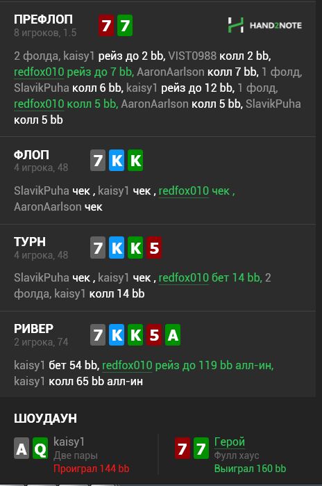 В этот раз повезло по итогу. Не блефуют так часто ривер на этих лимитах, чтобы их вскрывать.