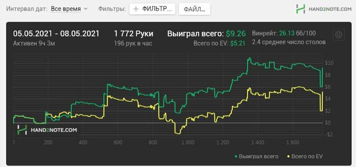 Ну, а следом шла раздача где получилось отыграть эту просадку. Ситуация схожая.