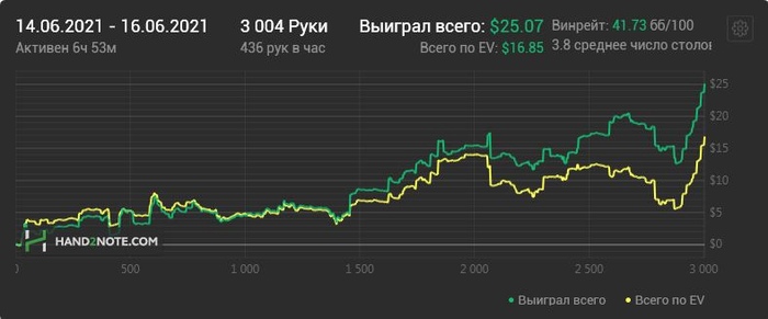 Последние 3 дня начал более активно играть, отыгрывать хоть какую-то дистанцию, зашёл посмотреть график. Играю 4 стола NL2.Думаю всё-таки до депозить банкролл до nl5-nl10, чтобы веселее было.