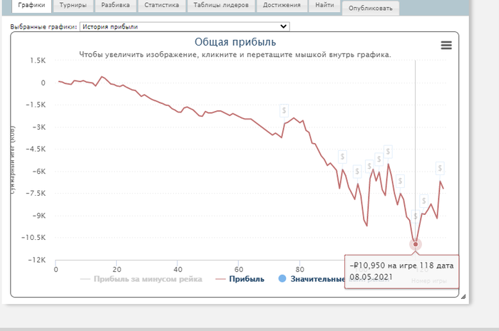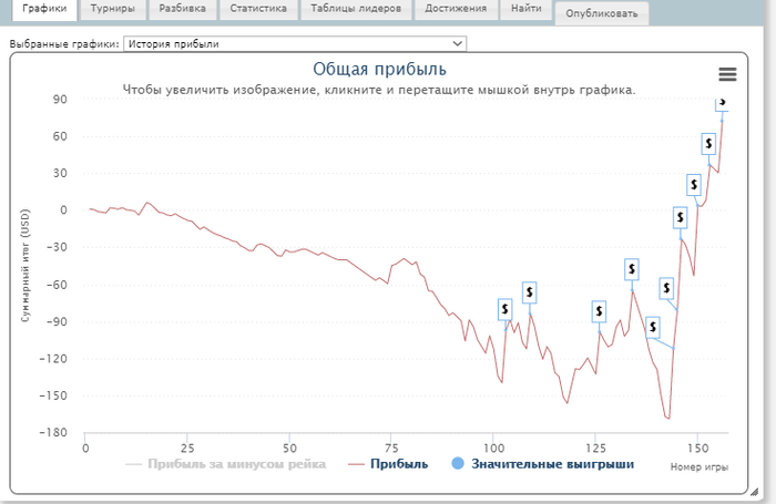 Тут вы видите минусовый график, так как с 18го года не играл тут после слива банкролла. И соответственно с этой точки и начинается этот марафон.