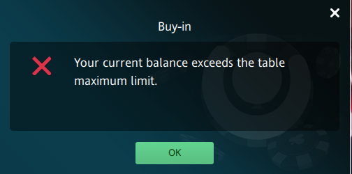 Kirr888, ты хочешь взять больше денег за стол (видимо кеш катаешь), чем доступно для этого стола. На будущее, при появлении сообщений