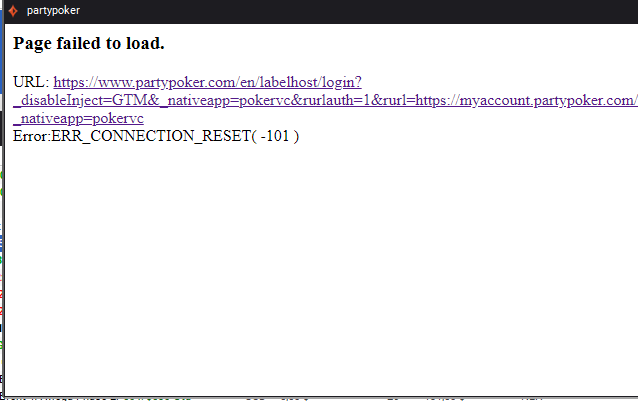 Здравствуйте. Может кто сталкивался? Загружается клиент при попытке войти появляется вот это окно. Ссылка не работает, да и сайт патипокера не работает.