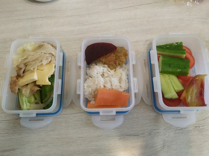 -Еда раз в 3 часа(за 5 минут до еды пить стакан холодной воды), в перерывах между приемами пищи пить кофе/зеленый чай (совсем без сахара я пить не могу, всякие сахарозаменители и подсластители тоже не понравились, поэтому ложу 1 чайную ложку сахара на кружку, это примерно 20-30 Ккал + помогает не есть сладости)