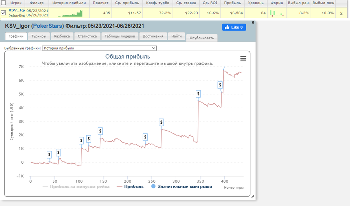 С начала марта по июнь сыграл в минус. -6k$
