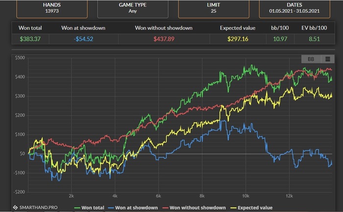 Проходил я старзы с NL10 (долго втягивался, катая вату в зуме старзов, nl2-nl5, но был банкролл на NL10, решил что пора и туда заскочить, взял несколько тренировок у нескольких тренеров и начал вливаться, прошел NL10, проскочил (как-то очень быстро) NL16, май месяц катал NL25 only на старзах по красной (половину месяца).