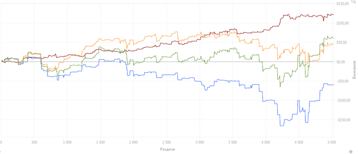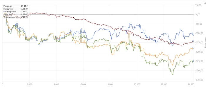 С марта по начала мая я очень много менял своих стратегий (играл по красной в пол, по красной в ноль и по красной в небо), подбирал для себя свою любимую, остановился на последнем варианте, для меня более менее ок.