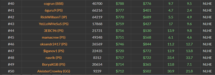 Даже я (не особо умею в теорию и получил жестких пиздячик от регов NL50) и то видел их лики (которых не мало) и уверен, что подтянув теорию и психологию более чем реально бить NL50 в 5-6bb+ (на PS'e NL 50 есть ниты с wwsf41-42 и даже они умудряются бить NL50 в +), ну камон