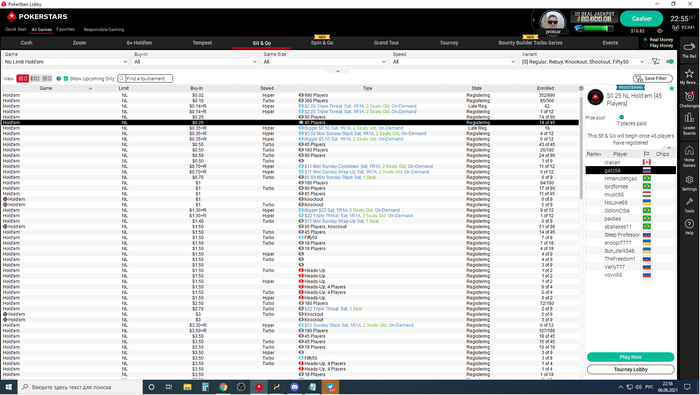 Решил в покерочек поиграть сегодня. Закинул семь фартовых американских долларов и один не менее фартовый цент, отыграл восемь турниров, но так, как в первых турнирах начал ошибаться, спровоцировал тильт и не стал больше грузить. Итог в одном из восьми я победил и занял два четвертых места.