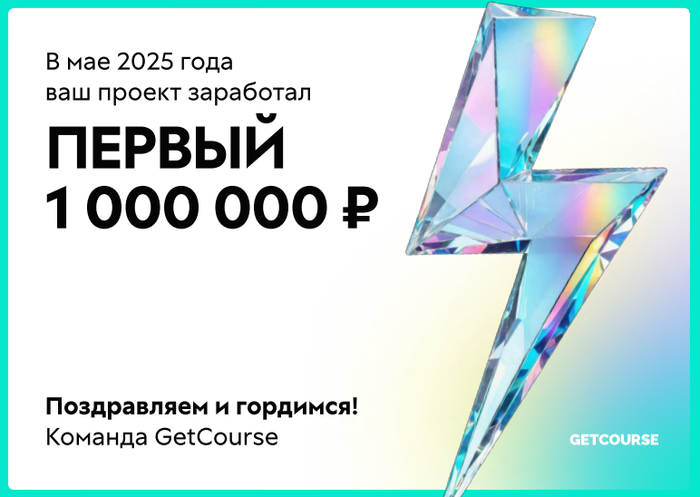 GetCourse прислали отметку — первый миллион рублей заработан через платформу 🎉
