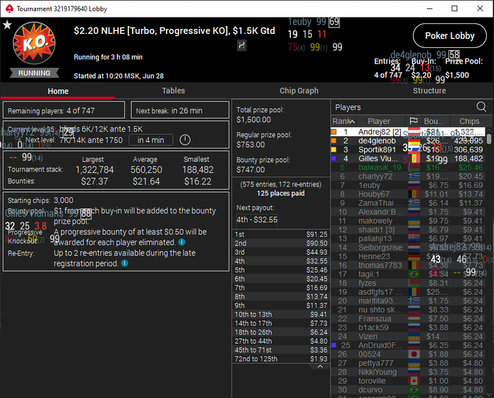 Очень обидно за турнир по 2,2. Очень плохо сыграл в конце. Шел 3-6 местах, плюс минус. Оставалось 15 человек и тут я просто упоролся как идиот