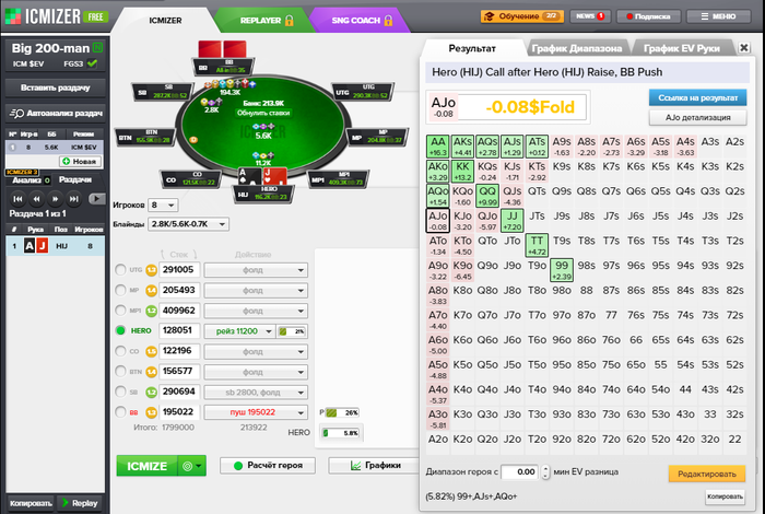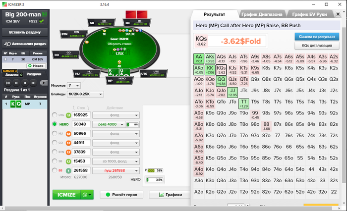 Вторая раздача получилась более пограничной именно по расчетам калькулятора...