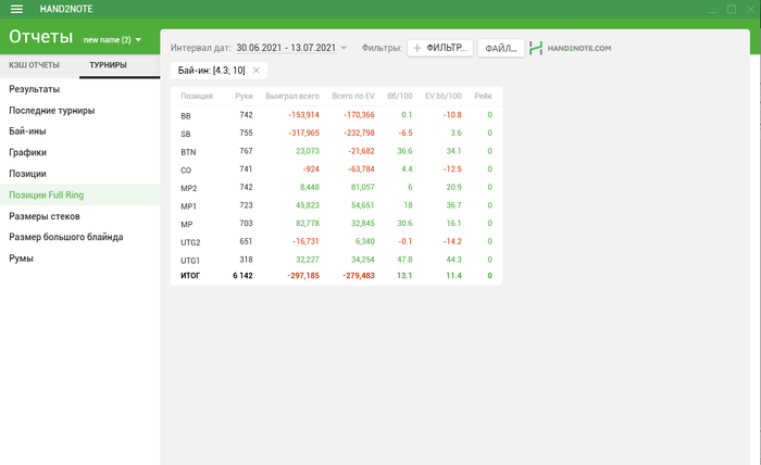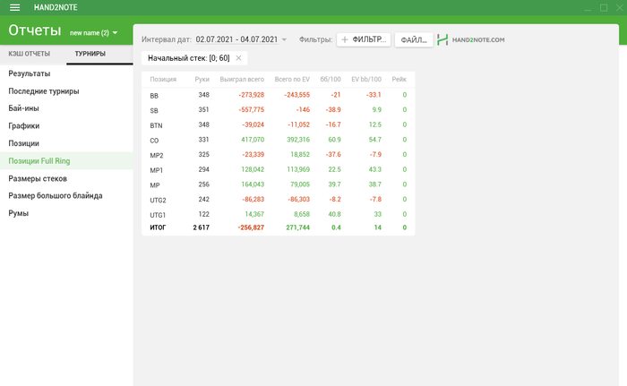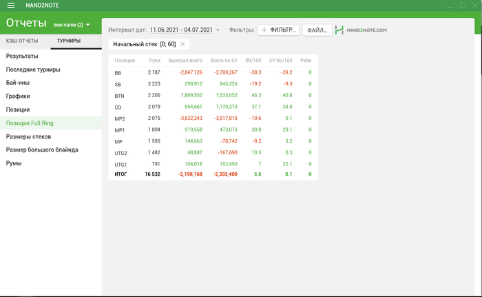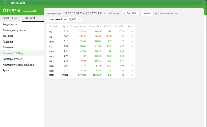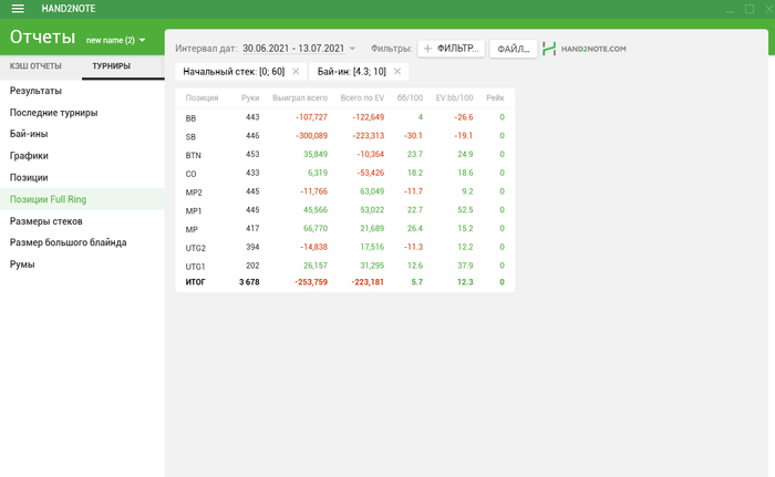 По винрейтам все отлично, переапался я жестко, хотя по общим винрейтам этого не видно, поэтому скину по стекам, где видно что в стеках 10-50 бб у меня приличный переап
