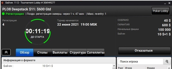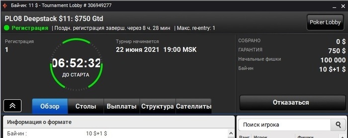 Позавчера я думал, что мне показалось, что днем зарегистрировался в вечернем турнире с гарантией 750$, а сам турнир в итоге прошел с гарантией 600$, вчера специально заскринил и оказался прав, когда я только зарегался в турнире одна гарантия: