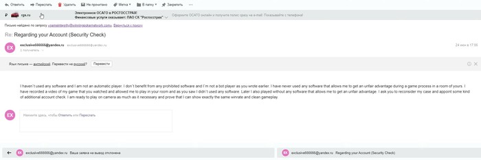 DmitryZ @ 14.07.21Почему нет? Поверхностная проверка прошла и тебя разблокировали, чтобы нормальные игроки не ждали месяцами, а более детальная показала что ты косячишь. Тебя обвинили в использовании нечестного преимущества + несовпадение данных, при этом СБ WPNа весьма мягкая и банит редко. Имхо на 99% это бот, оформленный на левый акк, так что бан справедливый. Несовпадение личных данных, лол.