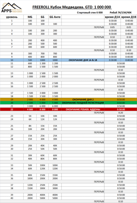 В Турнир бесплатно на фриролл стек можно зайти только один раз. Если играть со старта при блайдах 100/100, то бесплатный стек будет 60BB - 6 000 фишек.