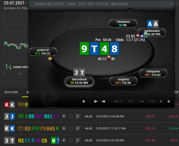 Получается основная наша проблема в том, что мы переигрываем свои дро руки, это минусовая линия вообще получается, особенно, если мы точно знаем руку соперника.