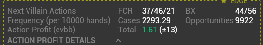 Есть вопрос по поводу evbb, снизу представлю скрин. Что значит, ваш action profit ev/bb = 1.61, я захожу в раздачи по гто(с небольшими подстройками) и знаю, что от моих действий идёт больше, чем evbb/100(но тут ведь не на сто), и как следовательно рассчитать, так нужные мне ev/bb на сто.