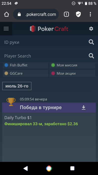 Деньги назад я пока что не получил. При этом человек выходит на связь (хотя вот сегодня в воскресенье пока что не отвечает ) и кормит завтраками. Человек отыграл 3 дня, заместо одного. При этом по шарскопу там небольшой плюс(в районе 11$) за 25, 26, 27. Он же не предоставил обратных доказательств (просто скриншоты двух выигрышей 2 с чем то и 13 с чем то долларов) и сказал, что все ушло на БИ в другие такие же турниры по 1-3$. Полную статистику покер крафта (за этот промежуток времени) по моей просьбе я не увидел. Однозначно не рекомендую к сотрудничеству, с большой долей вероятности будете обмануты так же как и я.