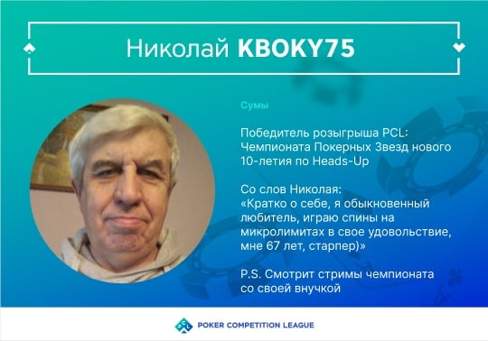 Но, самое главное для меня, это PCL: Poker Competition League - я являюсь родоначальником раздела покерных соревнований на Стрэтеджи, а по сути – во всем русскоязычном покерном пространстве.