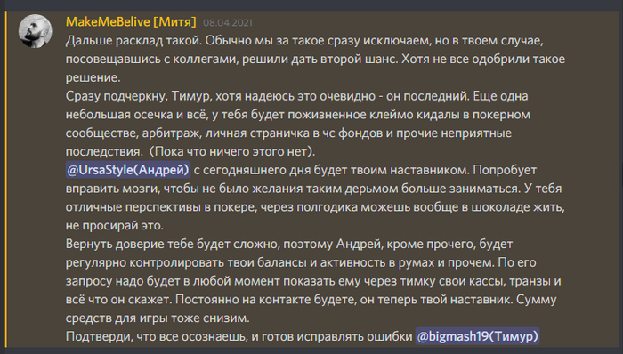 2. По мимо долга, который мы обсудили и поставили точки 08.04.2021, приписан мейк + какое-то воровство и подделка файлов.