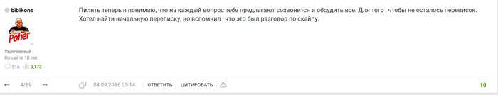Подумать только, меня вызвали на ковер! И прилетает целое простыня мутного полупьяного бреда в личное сообщение.