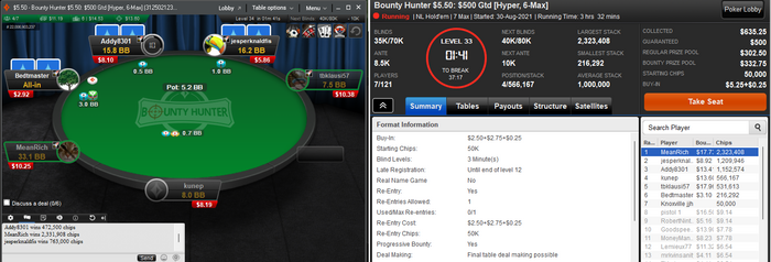 ну и дальше шло по сценарию, что человек в лобби со стартовым стеком и 0 баунти потиху ползёт выше и выше по призам, но за столом его нет офк.