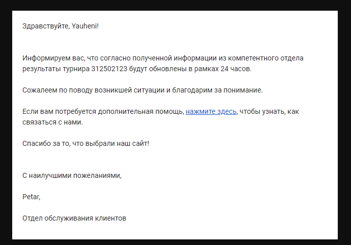 Итог, мне не додали за второе место ещё +20$ к призовым. Я писал в саппорт, они там вообще видимо даже решили не разбираться, а отписались вот так: