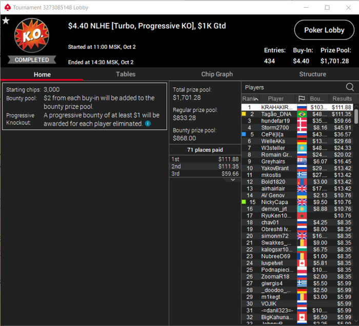 начнём с 15 турниров в день и попробую утреннюю катушку, старт 11:00 но только сегодня. Завтра думаю пораньше начать, часов в 8 или 9, попробую поля с меньшим афс чем в вечернее время. Моя сессия начиналась с 15:00 до 21:30