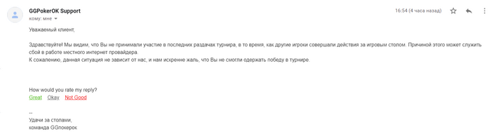 В какой-то момент я заметил пополнение в кассе и решил проверить покеркрафт, там увидел, что занял ссаное 2ое место. Поинтересовавшись у саппорта ГГ в чем же собственно дело, получил интересный ответ: