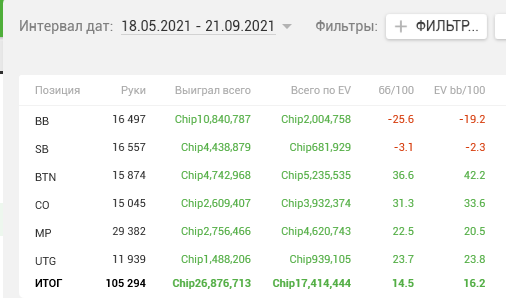 Винрейты за 2021 год, за последние 100 тысяч рук