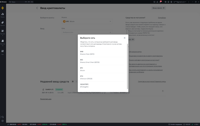 Хочу вывести в битках на Binance. Не выводил последнее время на Binance. Какие-то изменения по вводу, раньше нажимаешь ввод и дают адрес, теперь просят указать сначала какую-то сеть