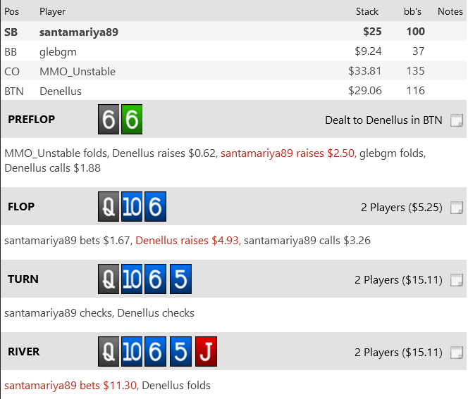 если ставим терн и летит пуш, то смотрим на пот-одсы, если не ставим, то просто сжигаем эквити своей руки и теряем велью, ев ставки выше чем чека, конечно если я адекватно представляю диапозоны оппа)))