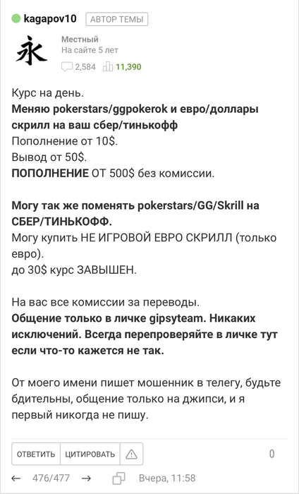 Привет, я так понял ты с ним в телеге общался? К сожалению это был мошенник. моей телеги в общем доступе нет, и там ник другой. Так же, я уже предупреждал ни раз что в телеге появился мошенник который от моего имени пытается развести. Вот скрин который я постил в теме недавно (так же есть на первой страничке) + скрин из профиля.