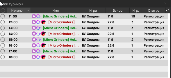сегодня стартую , загрузка с 7 утра до 7 вечера. Одна из проблем, которую вчера увидел , что практически нет турниров за 50 центов , если не брать снгэшки на покерстарс . Поэтому решил пойти более дисповенько и включать турниры за доллар.