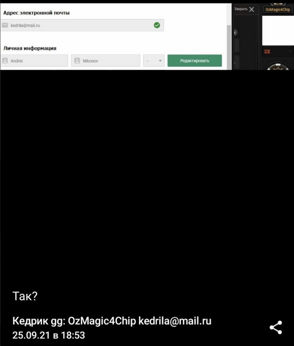 дают скрины с емейлом и ником на его фоне!