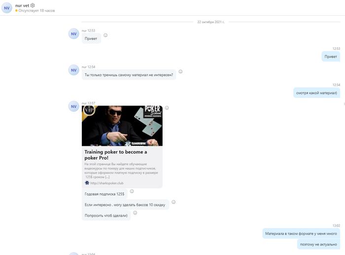 В лс пишет человек, предлагает купить курс у него. Либо купить подписку на сайте shark…club