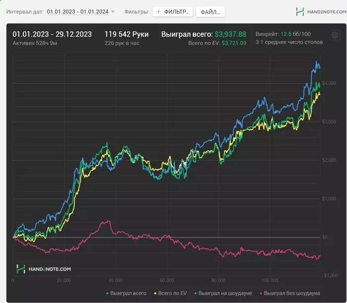 Привет форум. Решил поделиться успехами за 2023 г., т.к. считаю, что добился ощутимого роста в своей дисциплине по кэшу nlh.