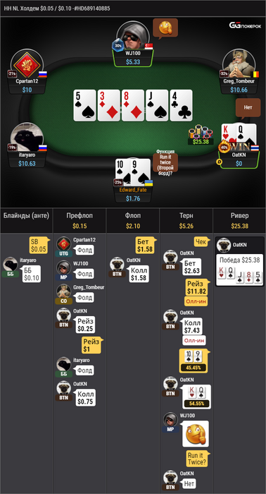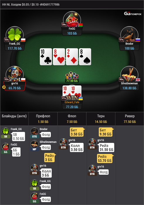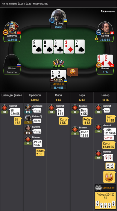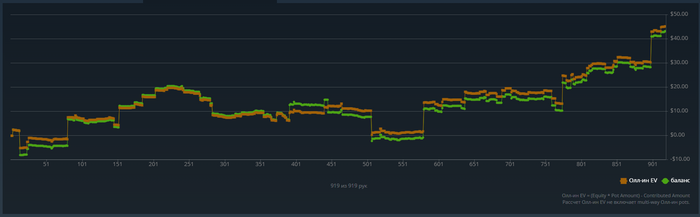 В целом GG мне понравился, хоть и нет статов, но поле очень хорошее, более того, когда на оппа условных 5к рук мне кажется трудно уловить его игру "сдесь и сейчас". Если и перейду как-нибудь в другой рум со статой, то поставлю обновление хада на 500 последних рук.