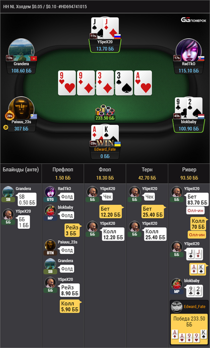 Оппам практически все доезжало, пару неудачных блефов, ну и пару классических раздач где мы левелим сами себя и отдаем стек на блеф-кетчинг.
