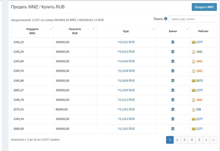 Научите плс ловить выгодный курс обмена WMZ на WMP на внутренней бирже webmoney exchanger.