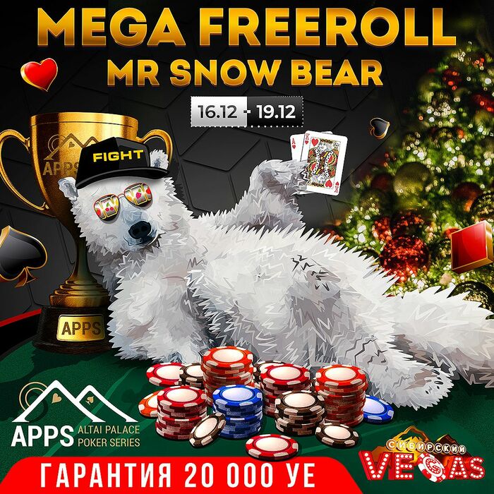 Покерный клуб Алтай Пэлас приглашает всех, кто любит хорошие турниры, на МЕГА ФРИРОЛЛ "Mister Snow Bear"!